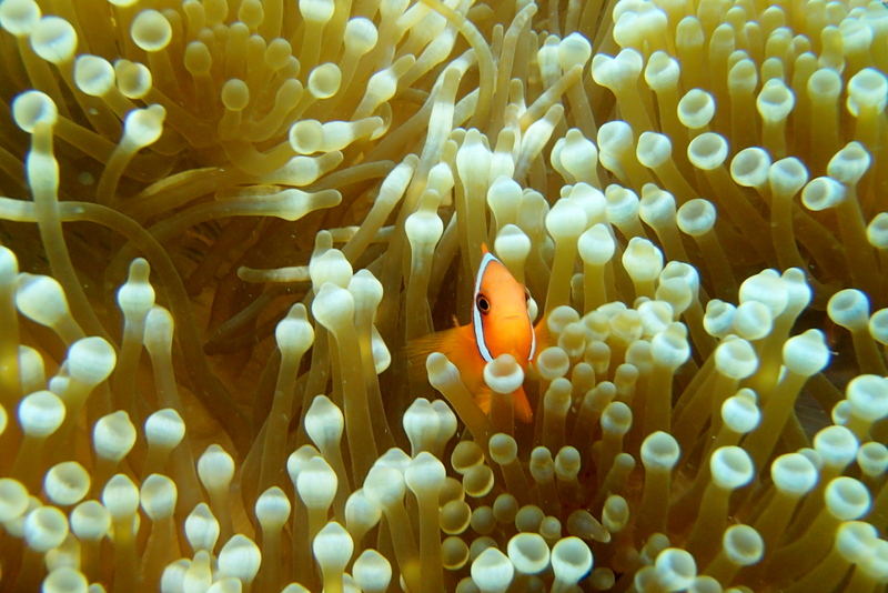 ここは色んな所にハマクマノミがいるので泳ぎながら自分で探してみるのもおもしろいですよ~♪