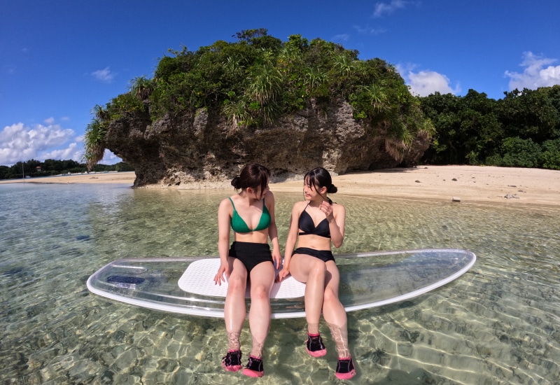 当ツアーは、通常の海で行うSUPツアーとは一味違います!使用するサップボードは沖縄県でも希少なクリアSUP。一般的なSUPツアーに使用されるボードと比べ、板自体の形状にあまり差はありませんが、全て透明なクリア仕様となっているため、透明度の高い海との相性バッチリ!水中の地形や生き物など足元の世界も楽しむことができます。初めての方でも簡単にでき、体幹へ刺激を与えるエクササイズ効果もあるため、抜群の環境の中で楽しみながらクルージングしましょう!